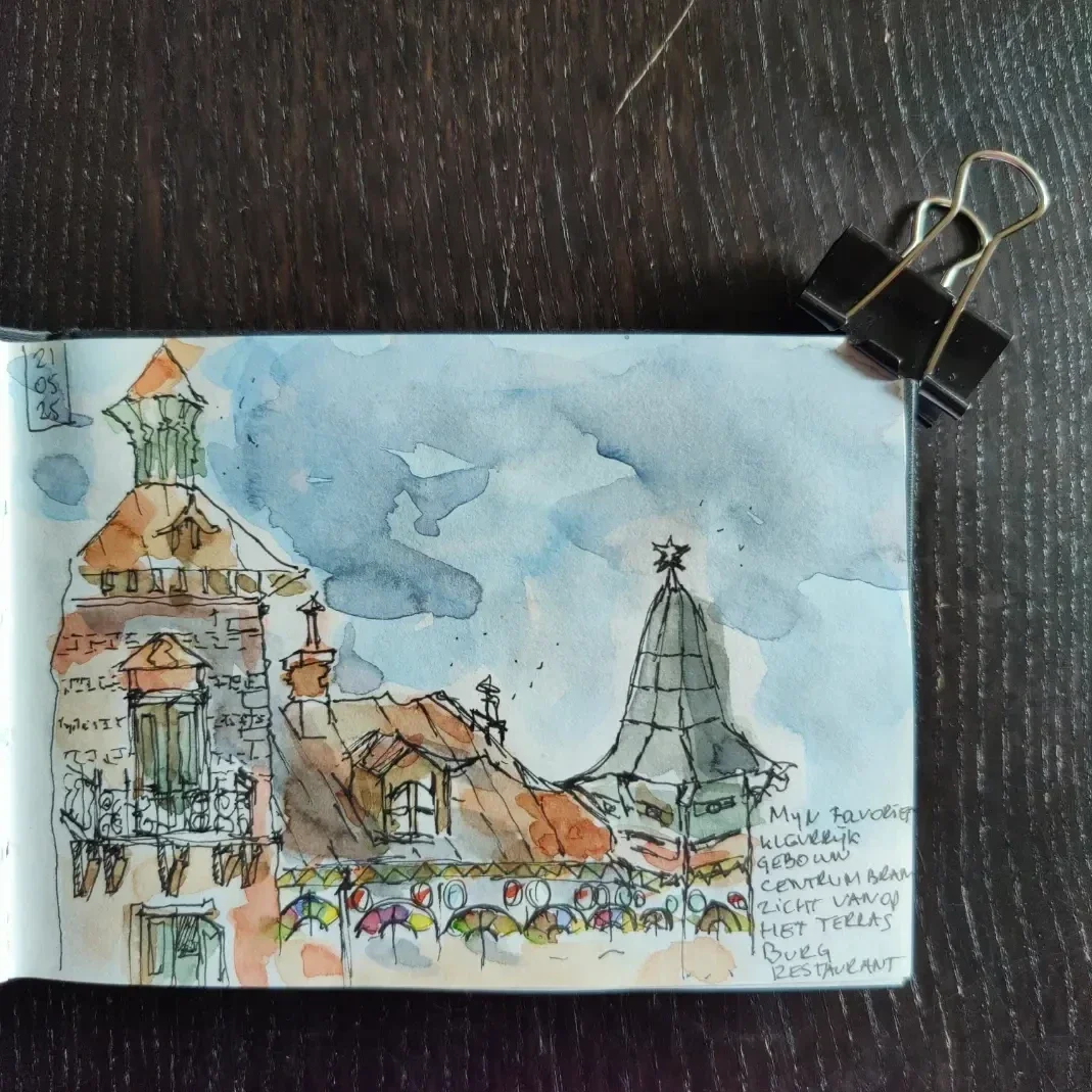 Hier vind je mijn Urban sketches en andere random schetsen van de dagelijkse dingen. In theorie is Urban sketching het op locatie tekenen van het dagelijks leven — direct uit observatie, spontaan en met een persoonlijke touch. Je vertelt het verhaal van de omgeving. Het gaat bij deze tekenvorm niet over het resultaat maar om het proces, de beleving van het moment. Het opnemen van de sfeer en daar je persoonlijke creatie van maken.